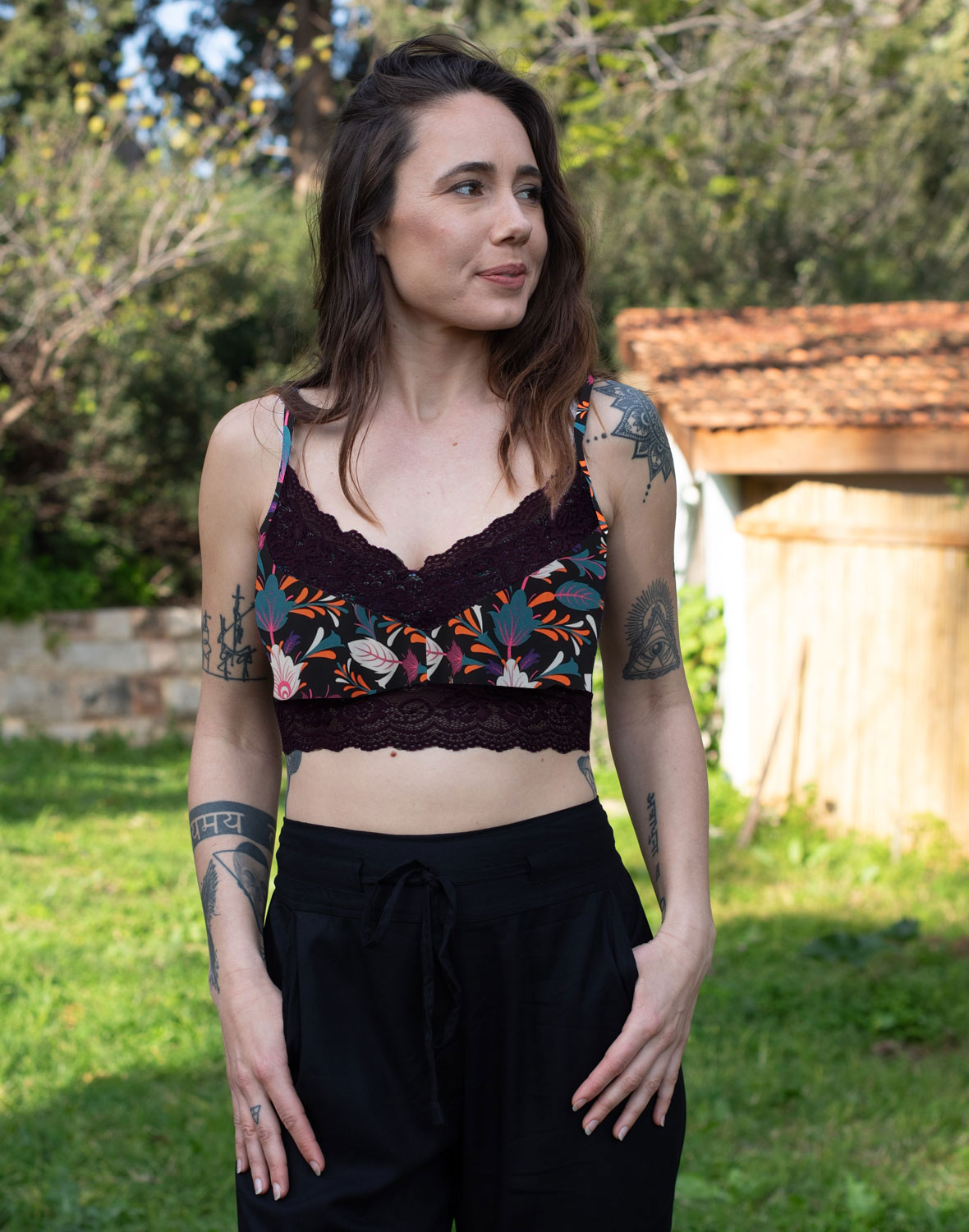 - מחשוף V נשי המשולב עם פס תחרה תואם